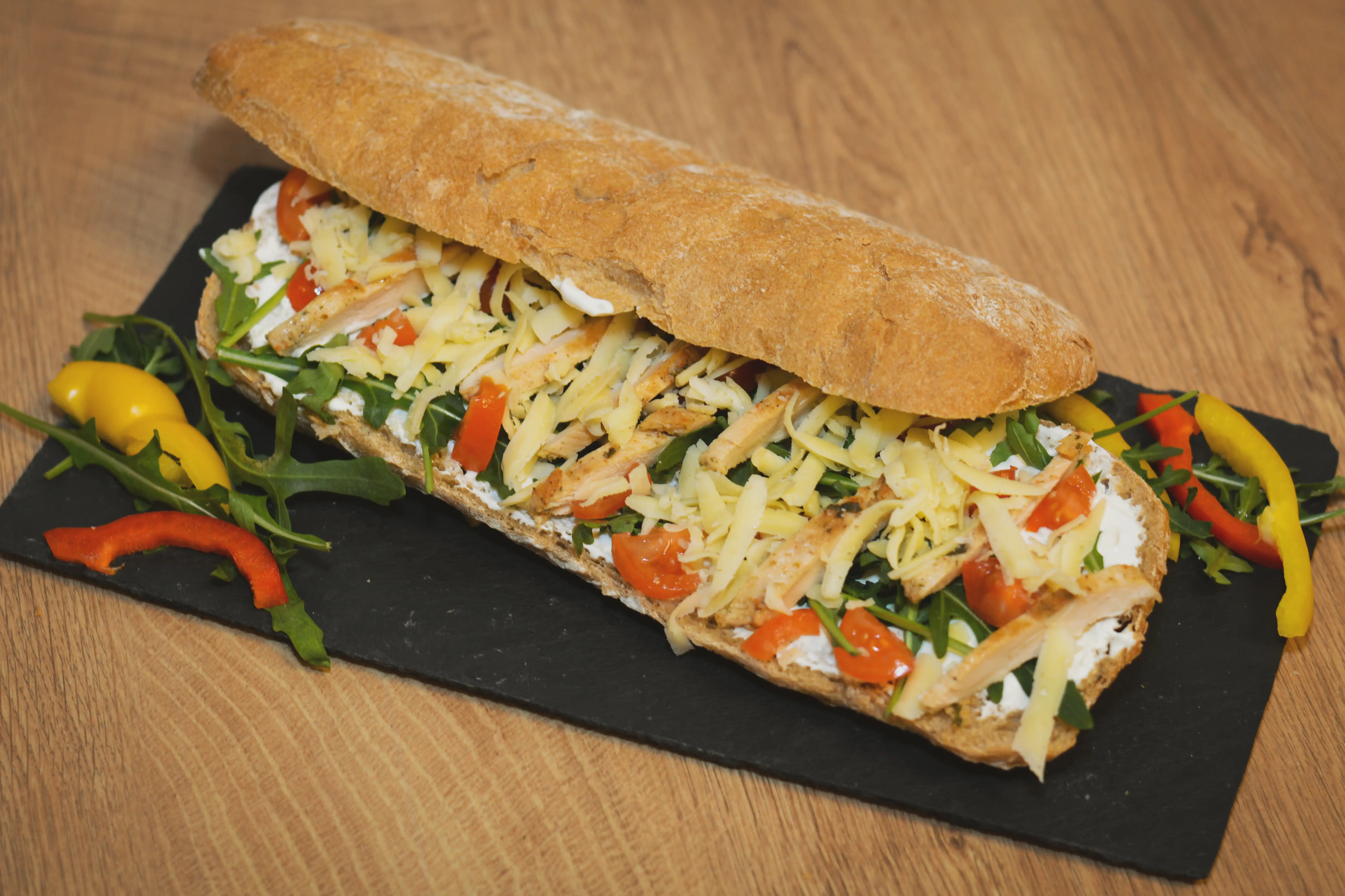 csirkemell, paradicsom, ruccola, sajt, fűszeres sajtkrém